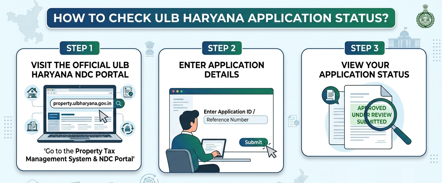 To check your Urban Local Bodies (ULB) Haryana application status, you can use the official Property Tax Management System & NDC Portal.