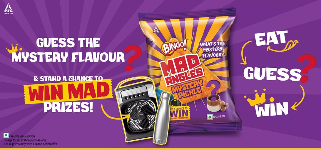 Bingo! Mad Angles Mystery Pickle Contest 2026 is sponsored and launched by ITC Ltd for selected packs specifying the applicability of the Contest in the range of the following products ITC Bingo! Mad Angles “Mystery Pickle” flavour (applicable for packs of Rs. 5, 10, 20 and 50). The Contest shall not apply to any such packs of Bingo Mad Angles which does not have the label calling out the Contest. This Contest is open to all the states of India. Contest ends on 31st March 2026.