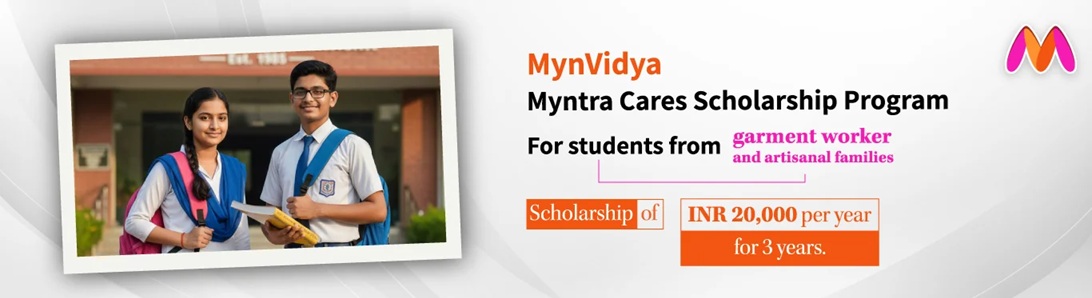 MynVidya Myntra Cares Scholarship Program 2026 is sponsored by Myntra Cares. Open to students from garment worker and artisanal families. This scholarship provides annual support for three consecutive years, covering educational expenses for students pursuing graduation courses at recognized State and Central universities. Selected students will receive INR 20,000 per year for three years to cover their educational expenses. Application closes on 15th February 2026.