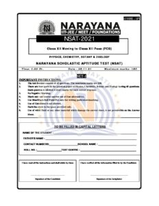 NSAT Narayana Scholastic Reward Exam [SCORE] Syllabus 2021