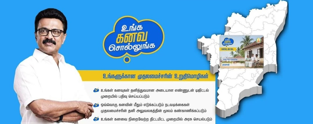 The Ungal Kanava Sollungal scheme is a large-scale public outreach and household survey initiative launched by the Government of Tamil Nadu on January 9, 2026 The scheme aims to collect the personal aspirations and future “dreams” of citizens to convert them into future policy initiatives and development projects. The survey targets approximately 1.91 crore households across all districts of Tamil Nadu over a one-month period.